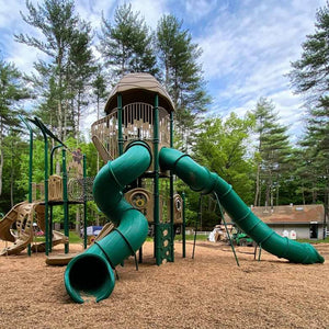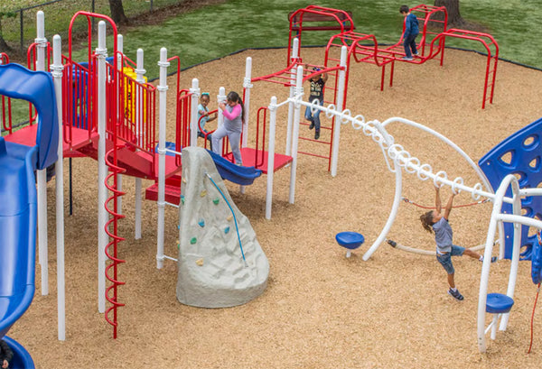 Natural looking boulders and Climbing Nets create high adventure and stimulate the imagination!