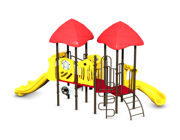 The Arcadia Playground Structure (Model: 10-130992) is a space-efficient and all-inclusive play system, meticulously designed to cater to the complete range of ages in a community setting.