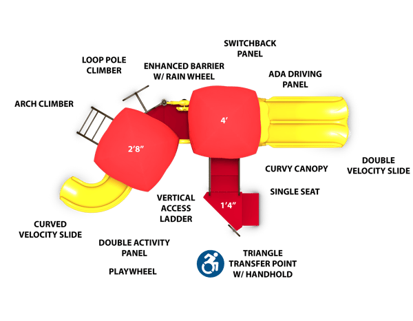 Safety & Space: Features a low critical fall height of 4 feet, and requires a safety zone of 33'9" x 23'3".